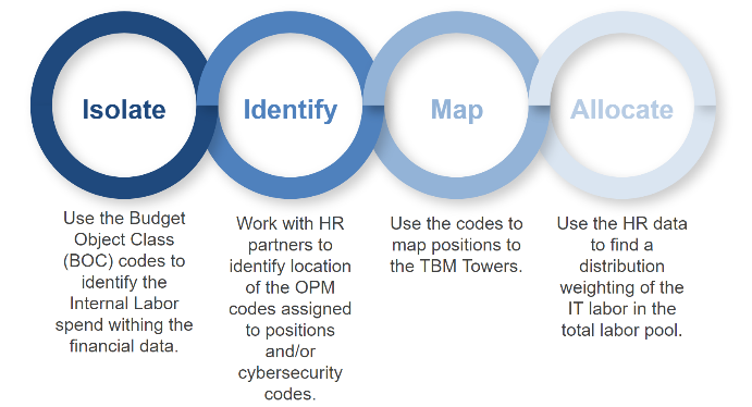 - Isolate – Use the Budget Object Class (BOC) codes to identify the Internal Labor spend within the financial data.